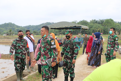 Usai pengecekan produk, Tim Wasev Sterdam IM yang didampingi Kasdim 0104/Atim beserta Pasiter Kodim, bergarak menuju Desa Paya Bili Sa yang terletak di Kecamatan Birem Bayeun untuk mengecek lahan percontohan sawah milik Kelompok Tani Sukatani yang merupakan Kelompok Tani binaan Koramil11/Brb Kodim0104/Atim dengan luas 1 Hektare.